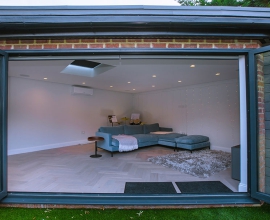Garden room ideas are based on the garden theme while encompassing modern and traditional elements. The design uses earth tone colours, a neutral colour palette and spacious seating arrangements.